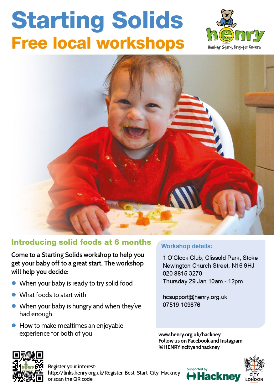 Come to a Starting Solids workshop to help you get your baby off to a great start. The workshop will help you decide: